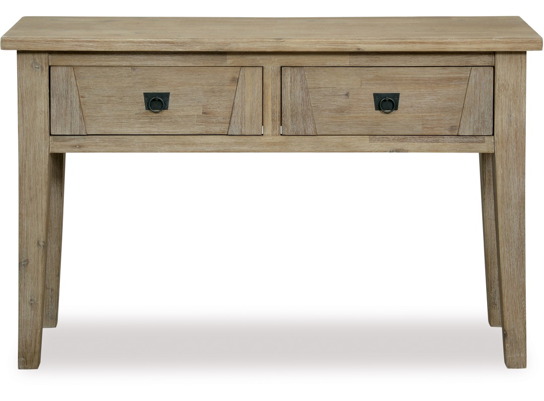 The Potters Barn hall table is full of rustic country charm and style. Made from a combination of solid and veneer acacia wood with a brown wash finish and features metal ring drawer handles. The Potters Barn hall table is available in two sizes and will make an eye catching addition to your living space.
