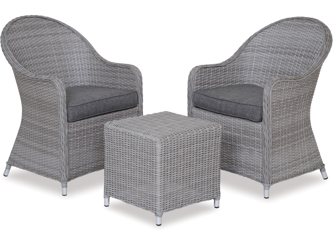 Add comfort and style to your outdoor living area with the Cabo 3-pce suite. The Cabo chair and side table are both stylish and durable and the woven wicker grey wash finish will complement many exteriors. Guaranteed to last in NZ conditions, the Cabo 3-pce setting is an excellent option for a small balcony or outdoor patio area.