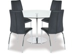 The Becky dining table is modern and stylish and offers great value and design. Featuring a clear glass top and chrome base, this table comfortably seats 4 people and is perfect for an apartment or small home living.