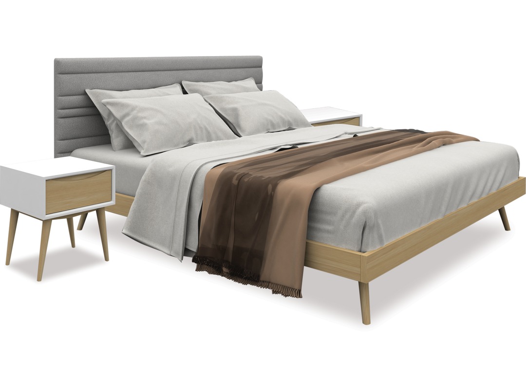 Sail Queen Slat Bed Frame & Headboard + Bedsides x 2