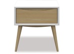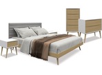 Stylish and contemporary, the Sail bedroom suite offers great design at real value. The Sail slat bed features a natural oak frame and legs, complemented by an upholstered headboard in grey fabric. The Sail bedside cabinet features a white matt frame complemented by a natural oak drawer front and legs. The Sail bedroom suite will make an eye-catching addition to your bedroom.